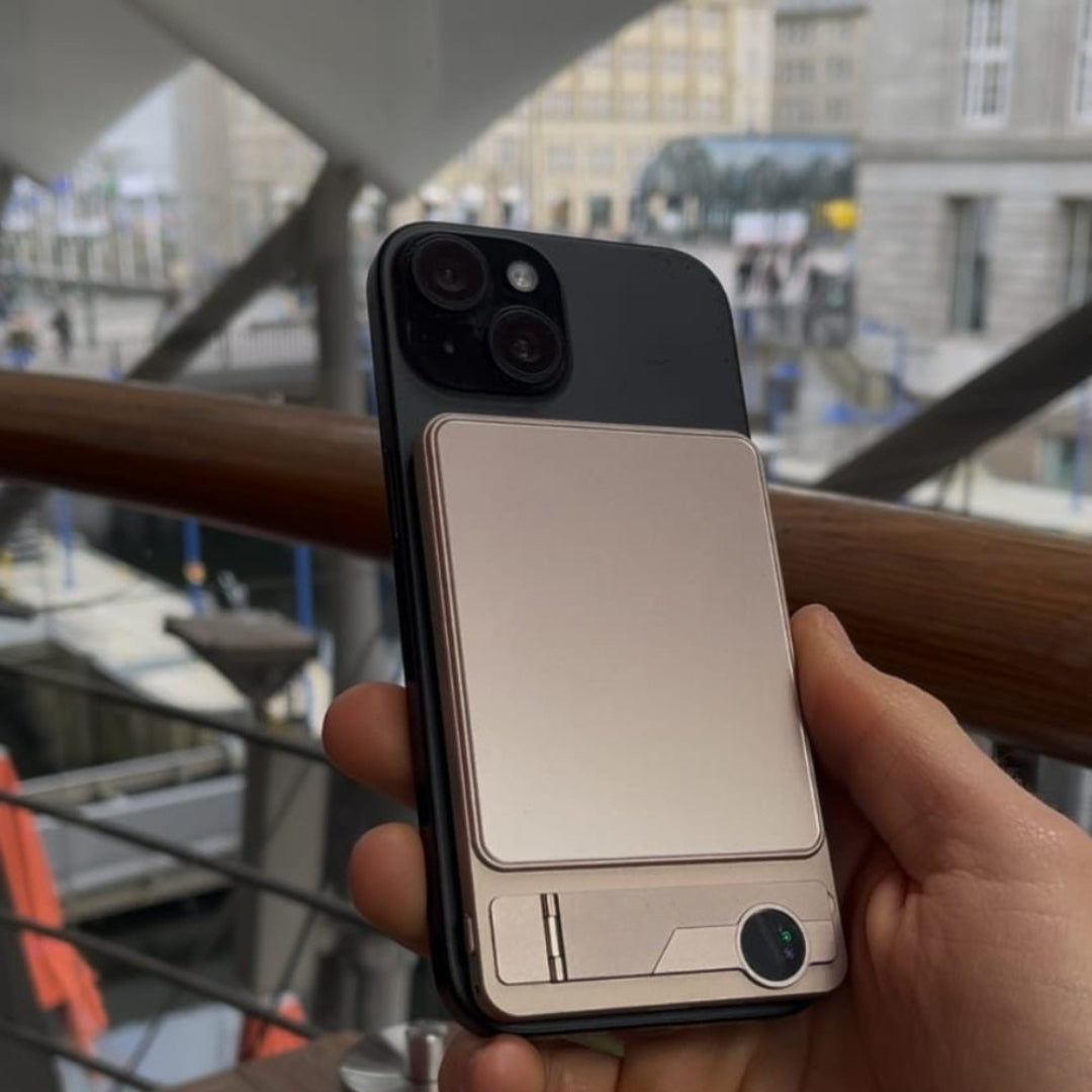 Il supporto posteriore integrato consente di appoggiare il telefono in posizione verticale, trasformando il dispositivo in un pratico stand per video, chiamate o streaming.